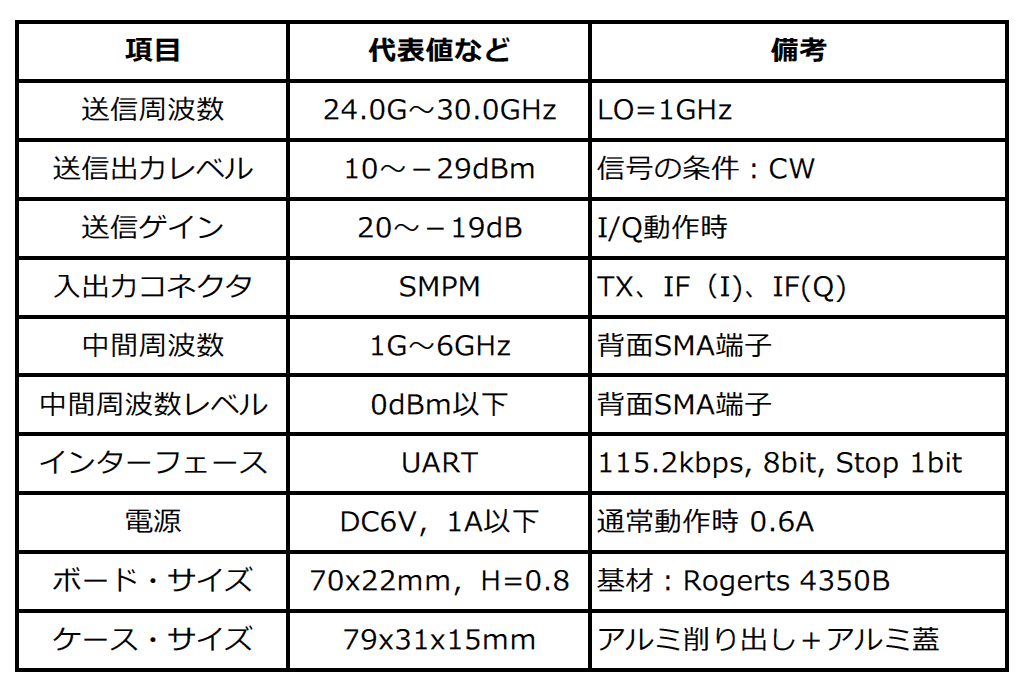 IF:1GHz ⇒ RF:24G~30GHzのコンパクトな送信モジュール
