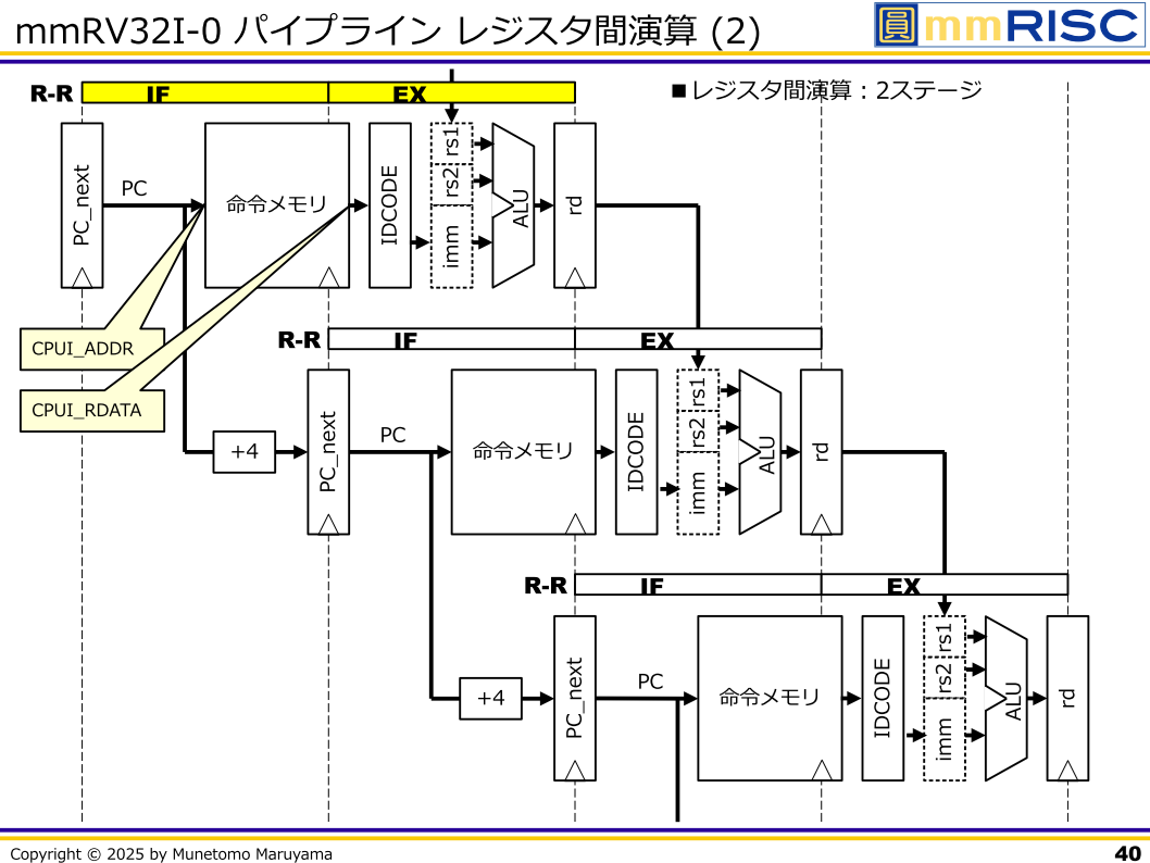 | コンピュータの基本構造とデータ転送のしくみ | CPUの命令処理と動作タイミング | ミニRISC-V CPU(mmRV32I-0)のパイプライン制御 |