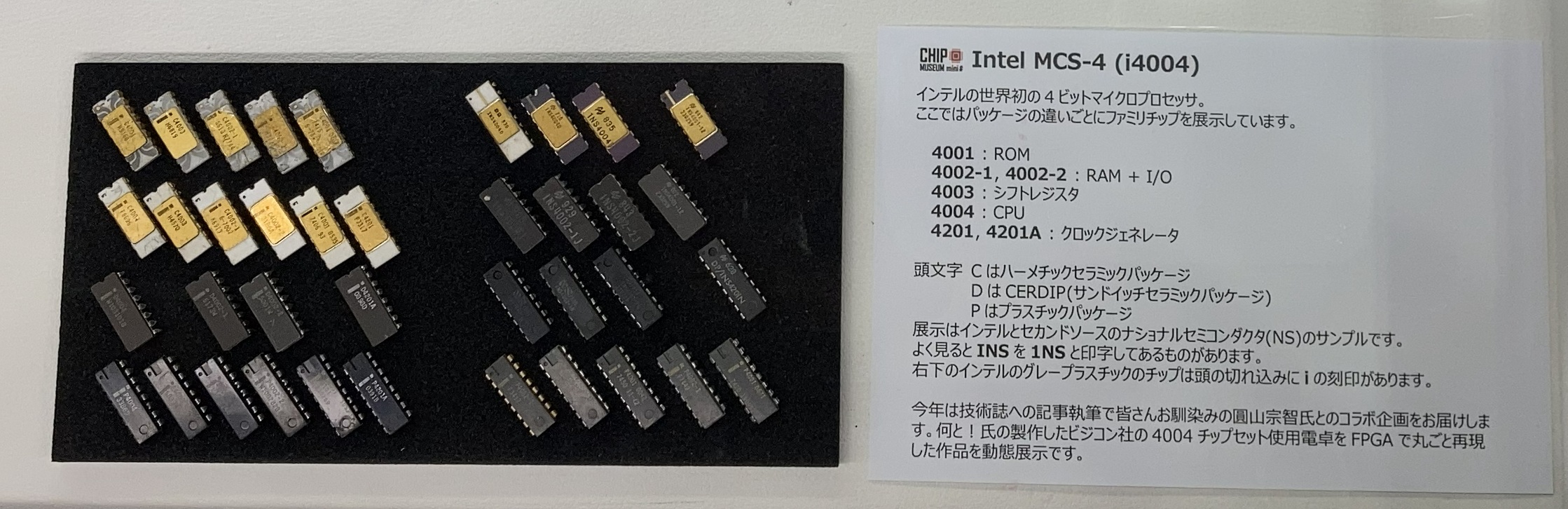 そして,最大の目玉は,4004を含むお宝チップの紹介コーナです.滅多に見ることができない歴史的なビンテージチップをご覧いただきます.