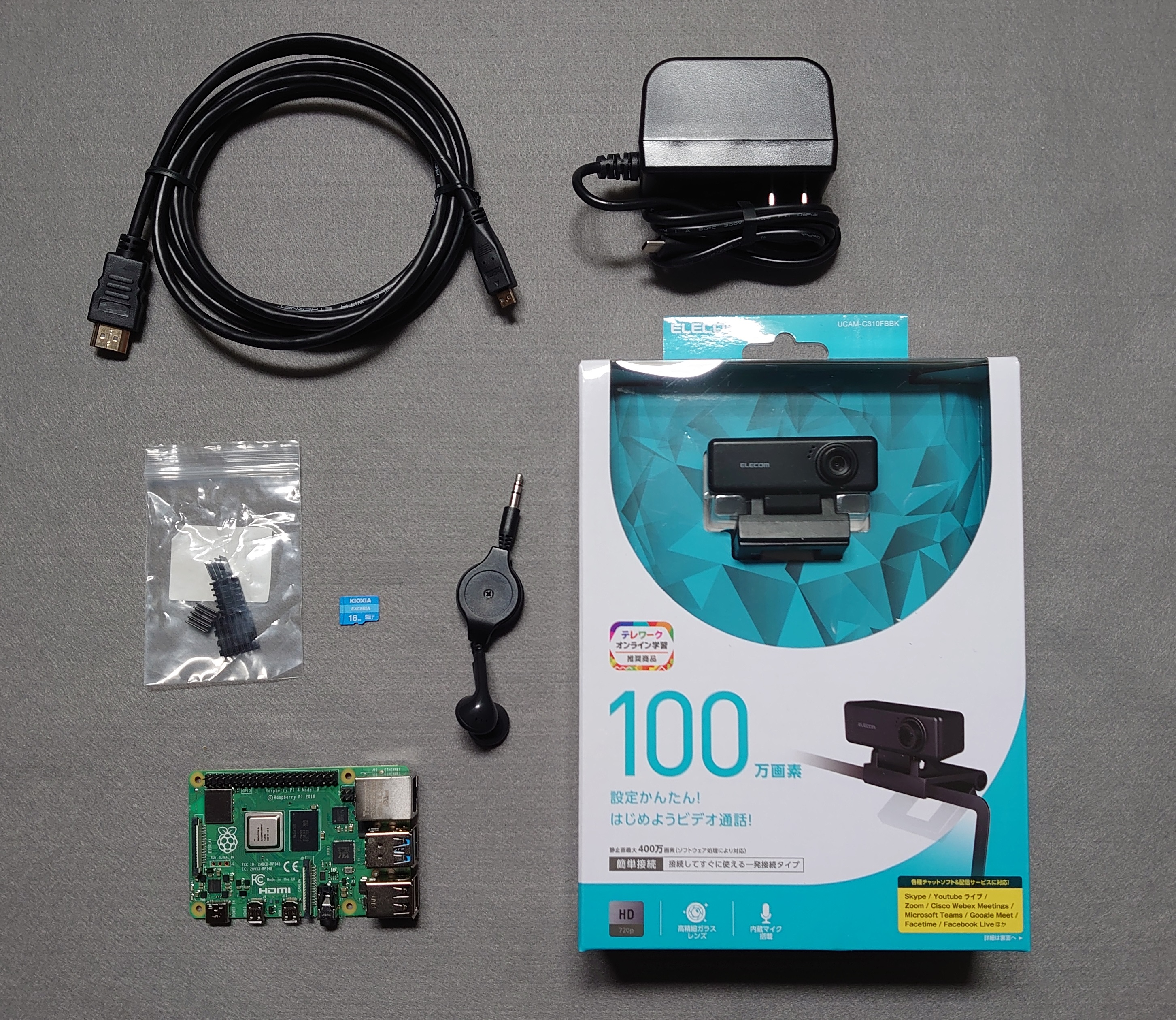 ラズベリー・パイ4やマイク内蔵Webカメラを準備可能な方は,下記の製品がおすすめです.