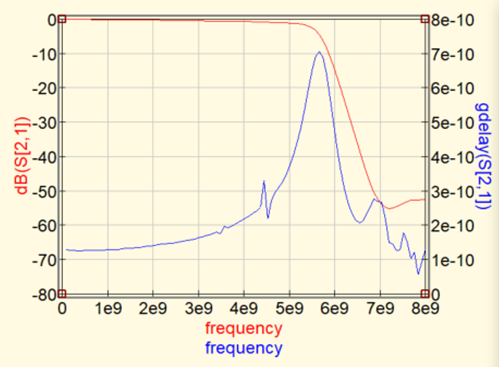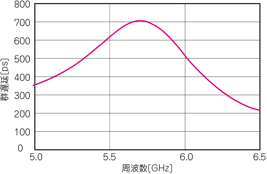 このグラフから,広帯域信号がひずみなく通せる範囲はだいたい4GHz以下と判断できます.許容できる群遅延は,求められる波形の精度によります.
