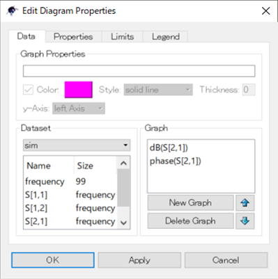 振幅と位相を表示させるためには,Edit Diagram Propatiesで次のように記述します.