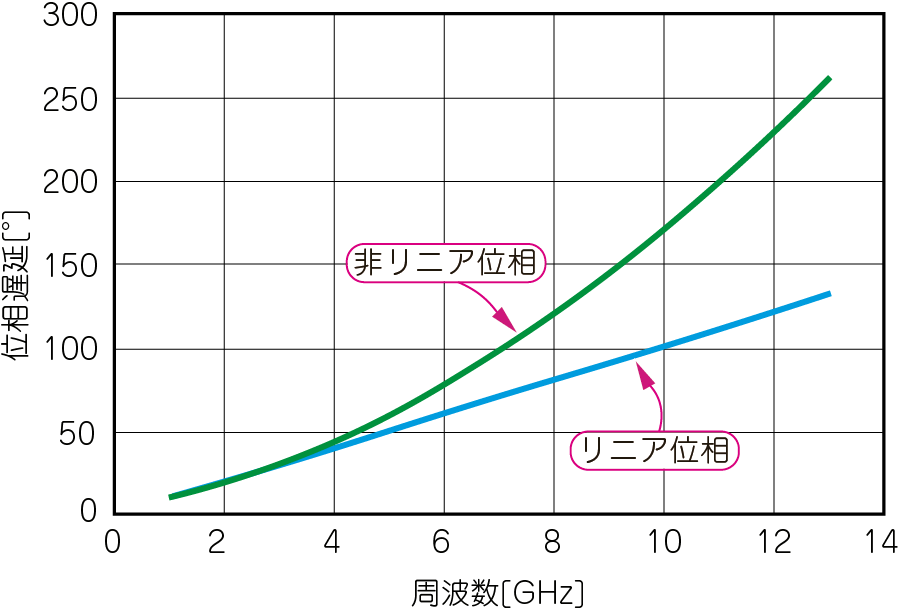 周波数成分によって遅延量が違うと波形が乱れる