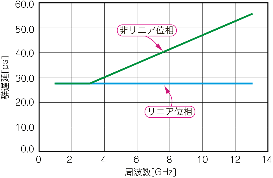 優れた広帯域伝送路は,周波数によらず群遅延の値が一定なのです.