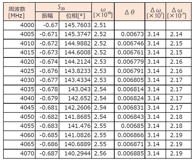 | ダウンロードした$S$パラメータから得られる「振幅」と「位相」から群遅延を求める |