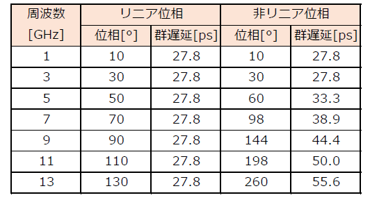 | 表1 図5の伝送路に1GHz,3GHz,5GHzを入力したときの遅延量 |