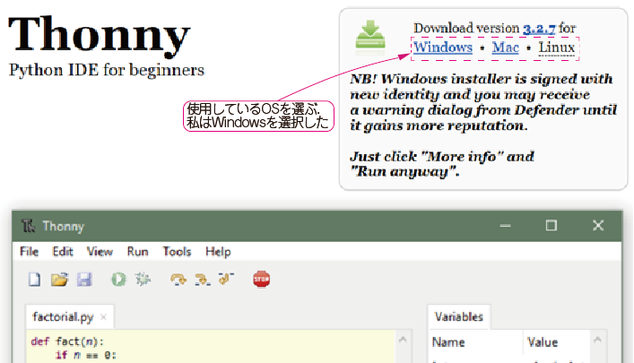 | 図9 Pythonの統合開発環境 Thonnyをダウンロードしてインストールする |