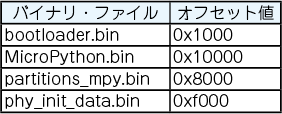 どんなマイコンも,電源が入り起動すると,CPUが決められた番地のメモリに命令を取りに行き処理をし始めます.オフセット値とは,MicroPythonファームウェアのバイナリ・データを書き込むメモリの最初の番地です.