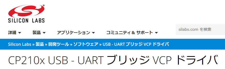- COMポート・ドライバ“CP210x USB – UART ブリッジ VCPドライバ”