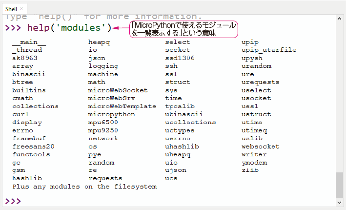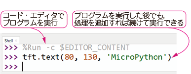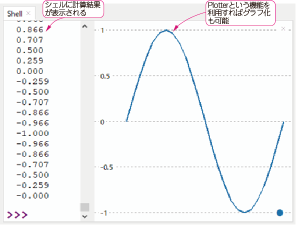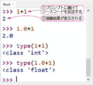 写真5にプログラムを実行したところを示します.処理が終わると,シェルにプロンプト“>>>”が表示されます.