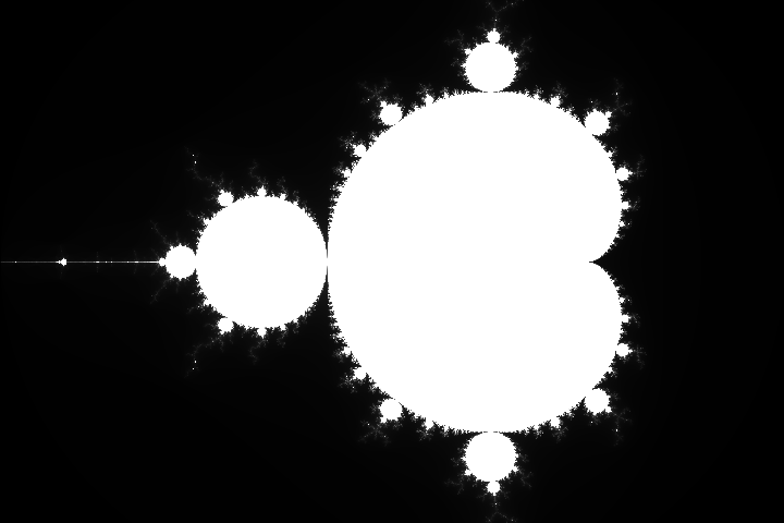 - マンデルブロ集合に含まれるピクセルは白,それ以外は黒で描画する