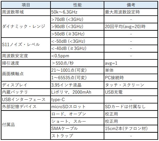 • 3:42:38 6-1 6GHzネットワーク・アナライザ LiteVNA64のスペック