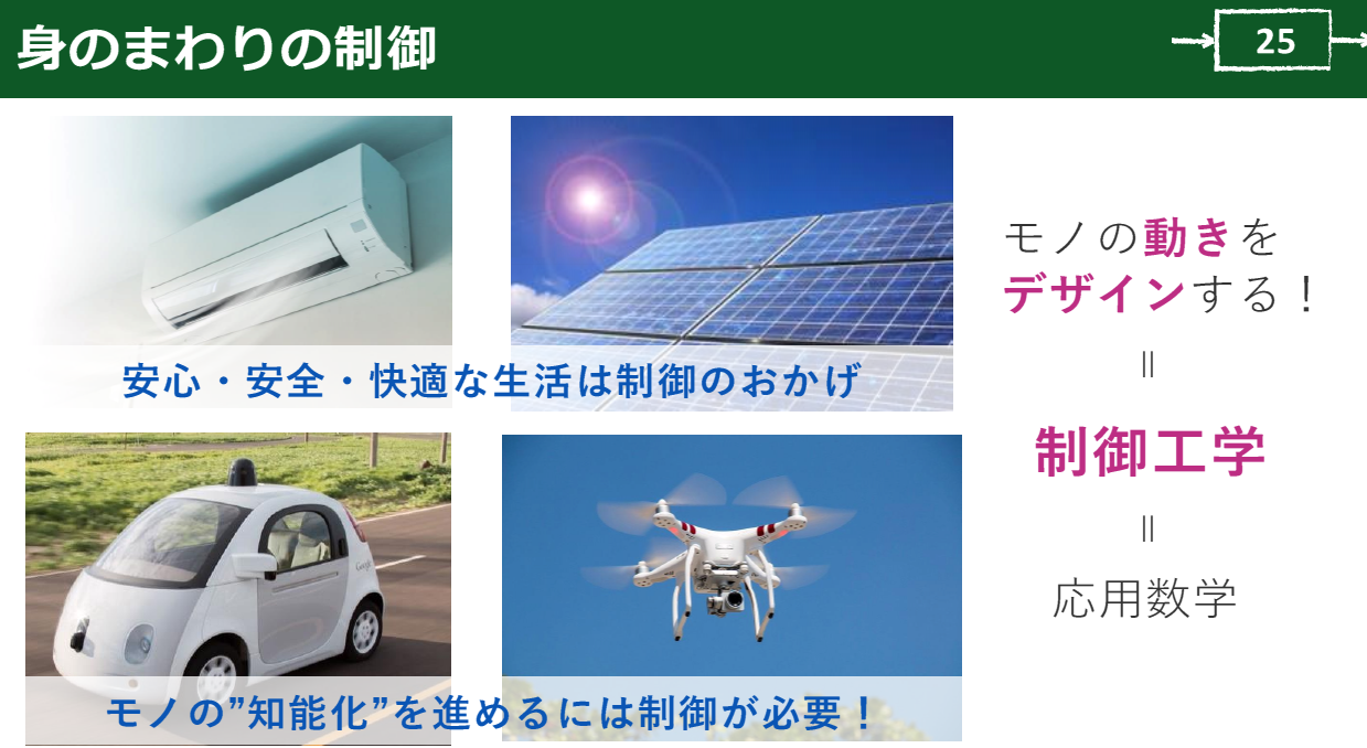 制御は「思い通りに操る」という直感に近い技術です.一方で,現実の対象は遅れや外乱を持ちます.操作を加えても,状態がすぐには変わらない場合があります.操作と状態の関係を理解し,状態を観測し,目標との差を評価し,操作を更新する流れが必要です.この流れが自動化の中核です.